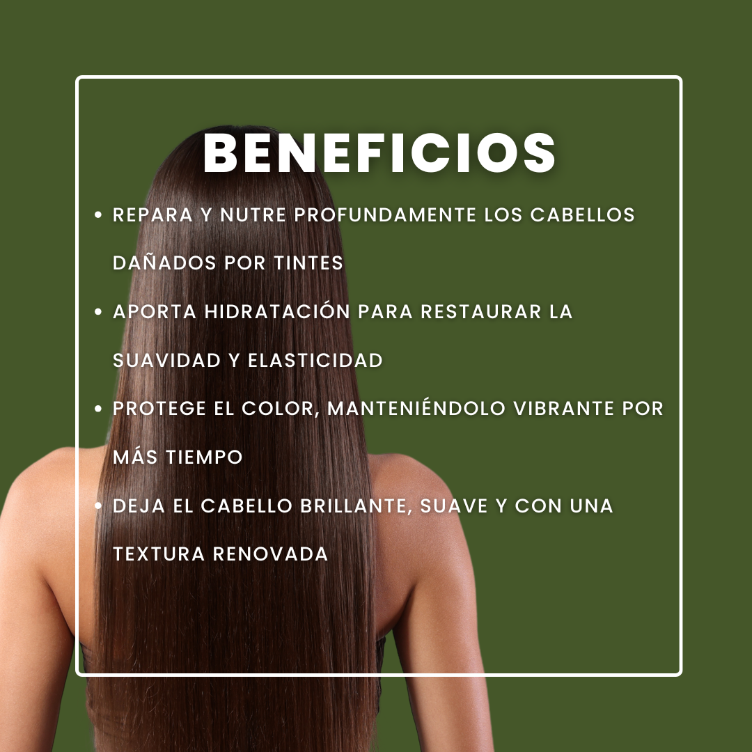 - Repara y nutre profundamente los cabellos dañados por tintes.
